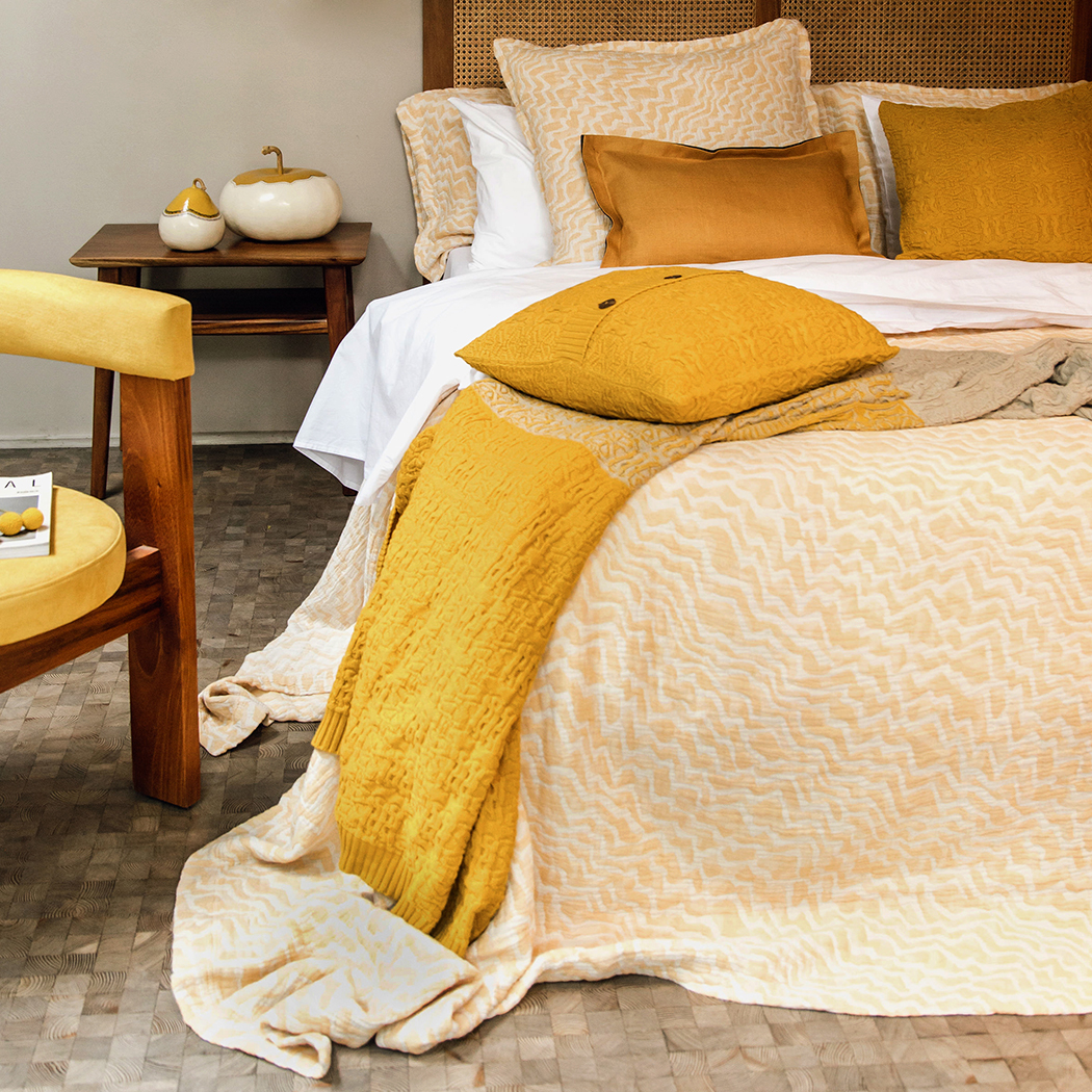 Como su nombre lo indica, nuestro cubrecama Dunas, imita las inigualables siluetas que se forman en la arena. Tejido en 100% algodón y de una suavidad increÃble, este cubrecama dará ese toque sutil de color que estabas buscando para tu habitación.
