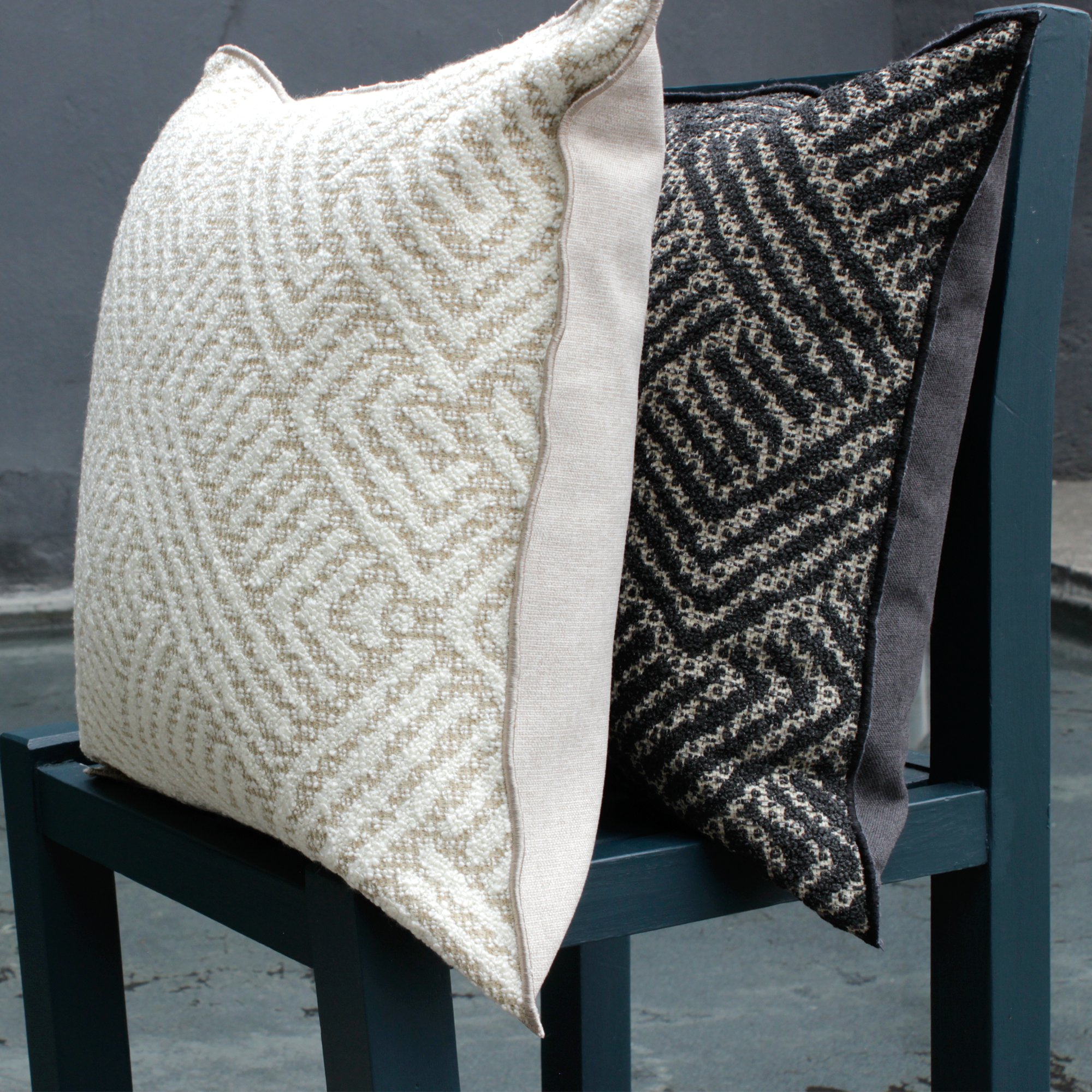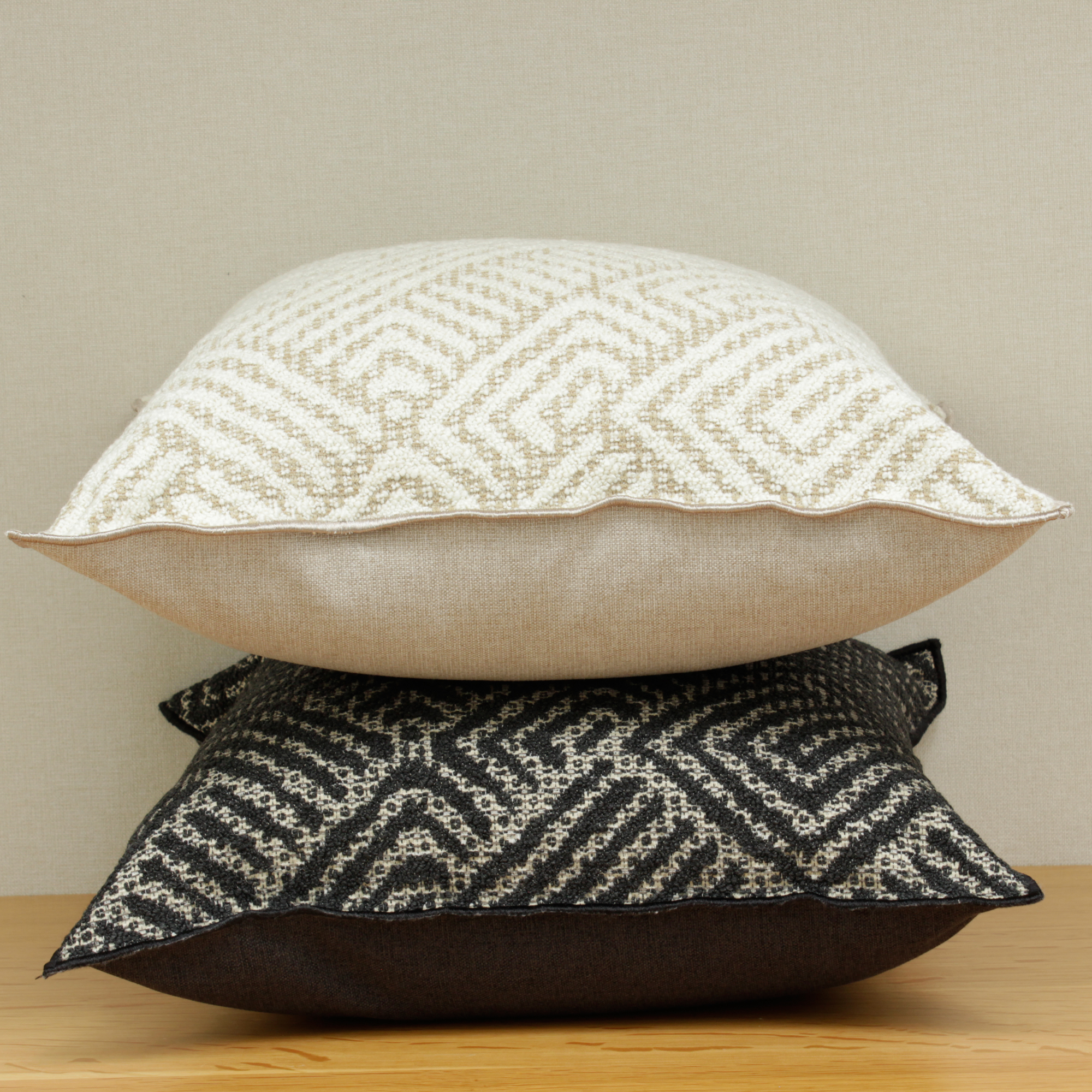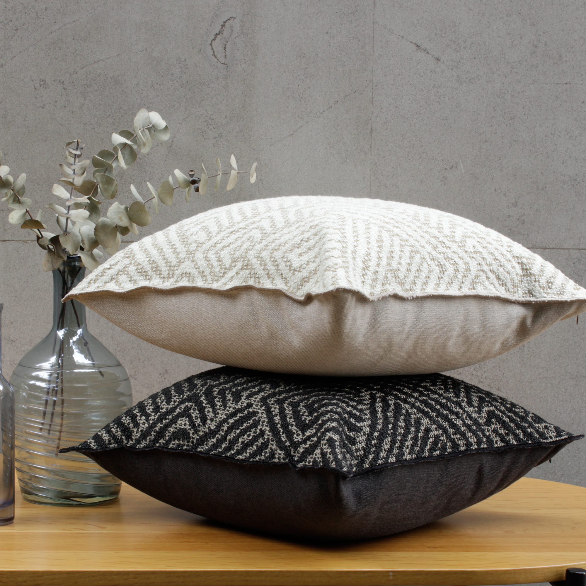 De tonos naturales, confeccionada con una cara en jacquard con motivos que evocan los geoglifos de Nazca, y el revés liso, esta funda de cojín le dará un toque elegante y contemporáneo a tu habitación.