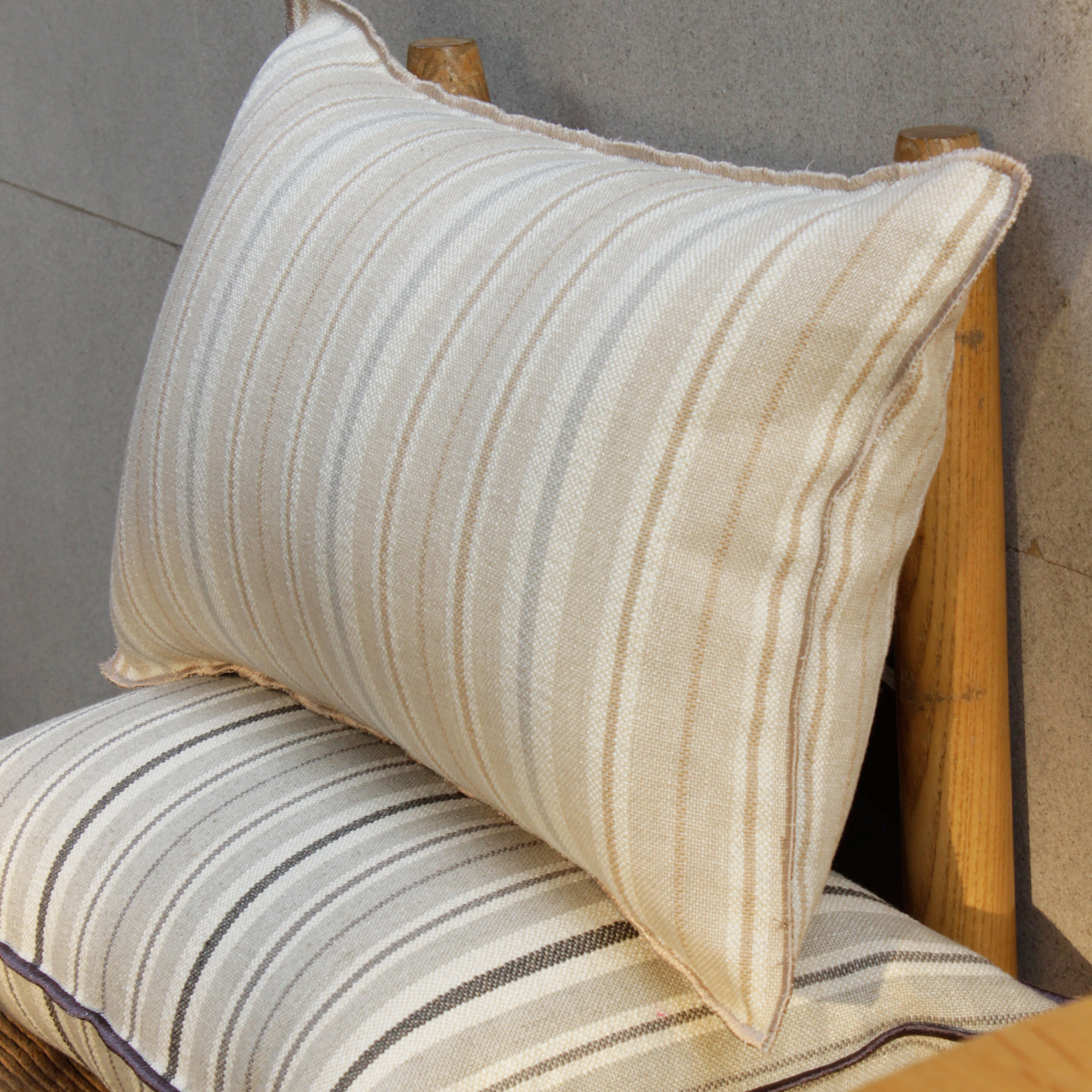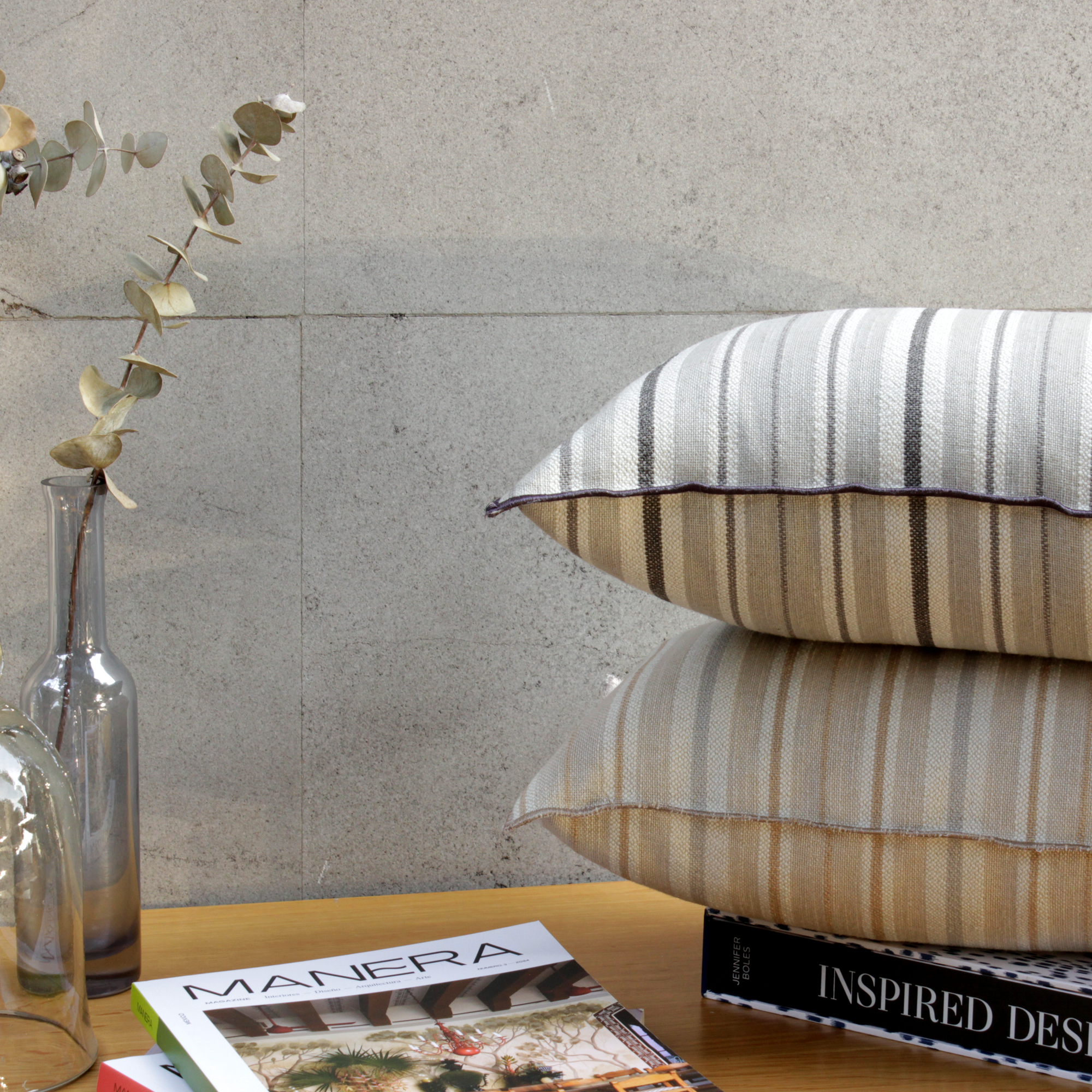 Confeccionado con un tejido de rayas en ambas caras, con lino y de aspecto natural, esta funda de cojín en tonos crudo y ocre creará ese look casual y elegante en cualquier hogar.