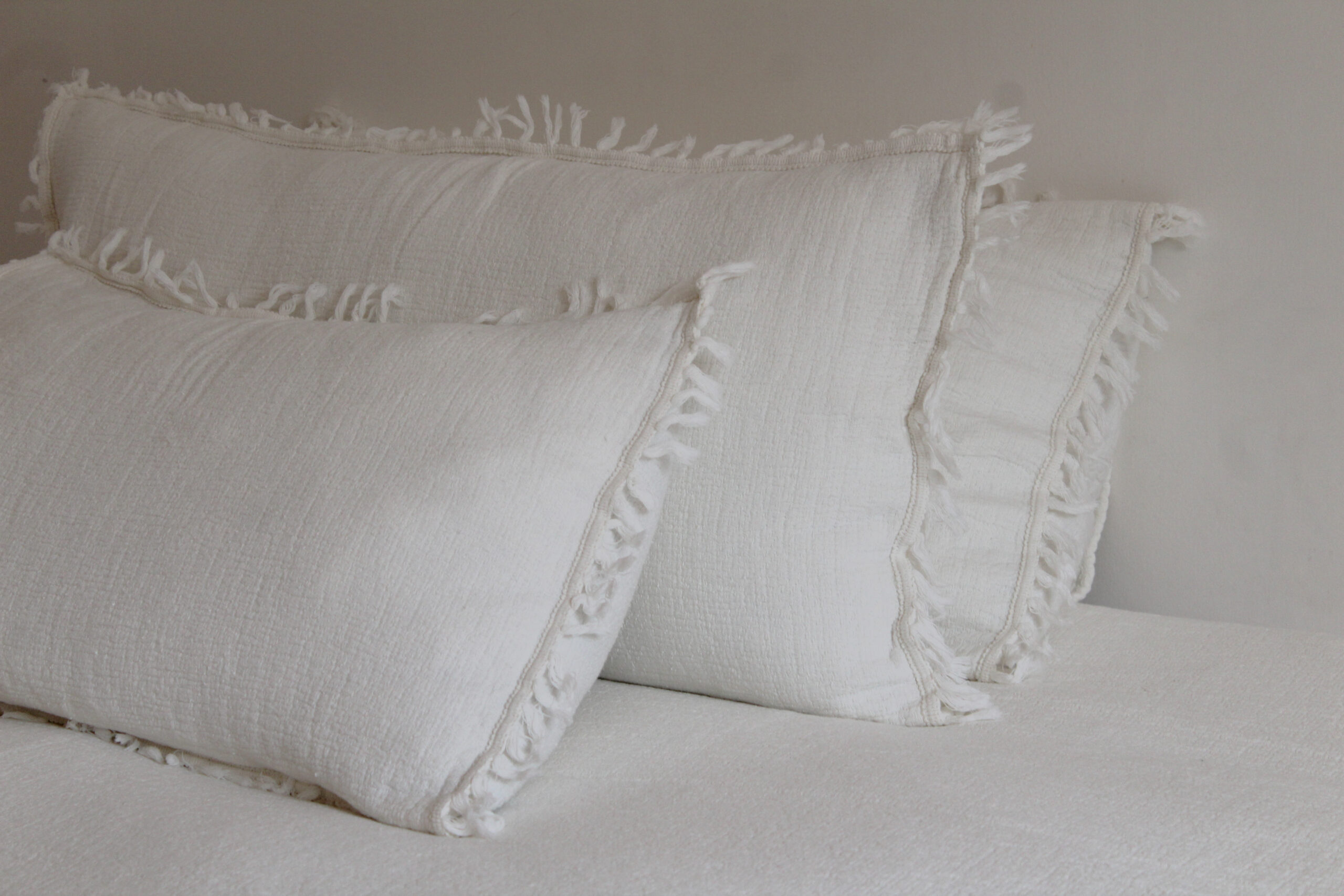 Inspirada en el color y las texturas que se forman en el agua, este bella funda decorativa será un elemento super coqueto para tu cama. Tejida en algodón 100% y con acabado stone washed, el flequillo que le cuelga todo al rededor le da un look boho y fresco.